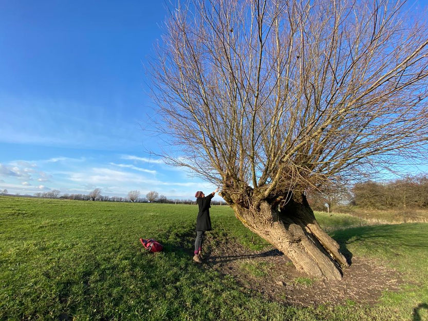 Vandaag ben ik teruggekeerd naar de wilgen en heb ik hun takken geoogst om te planten. Tezamen vormen zij een monument. Zie ook
